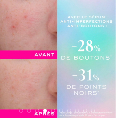 Nach 2 Monaten erleben Sie eine sichtbare Transformation: Pickelmale werden reduziert⁽²⁾, während die allgemeine Hautqualität sich signifikant verbessert: -28 % Pickel⁽³⁾ und -31 % Mitesser⁽³⁾!